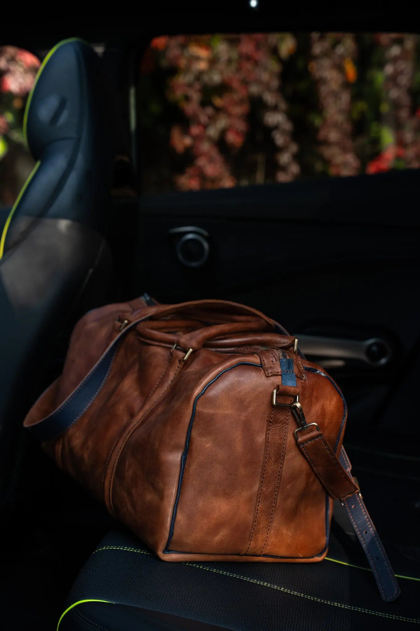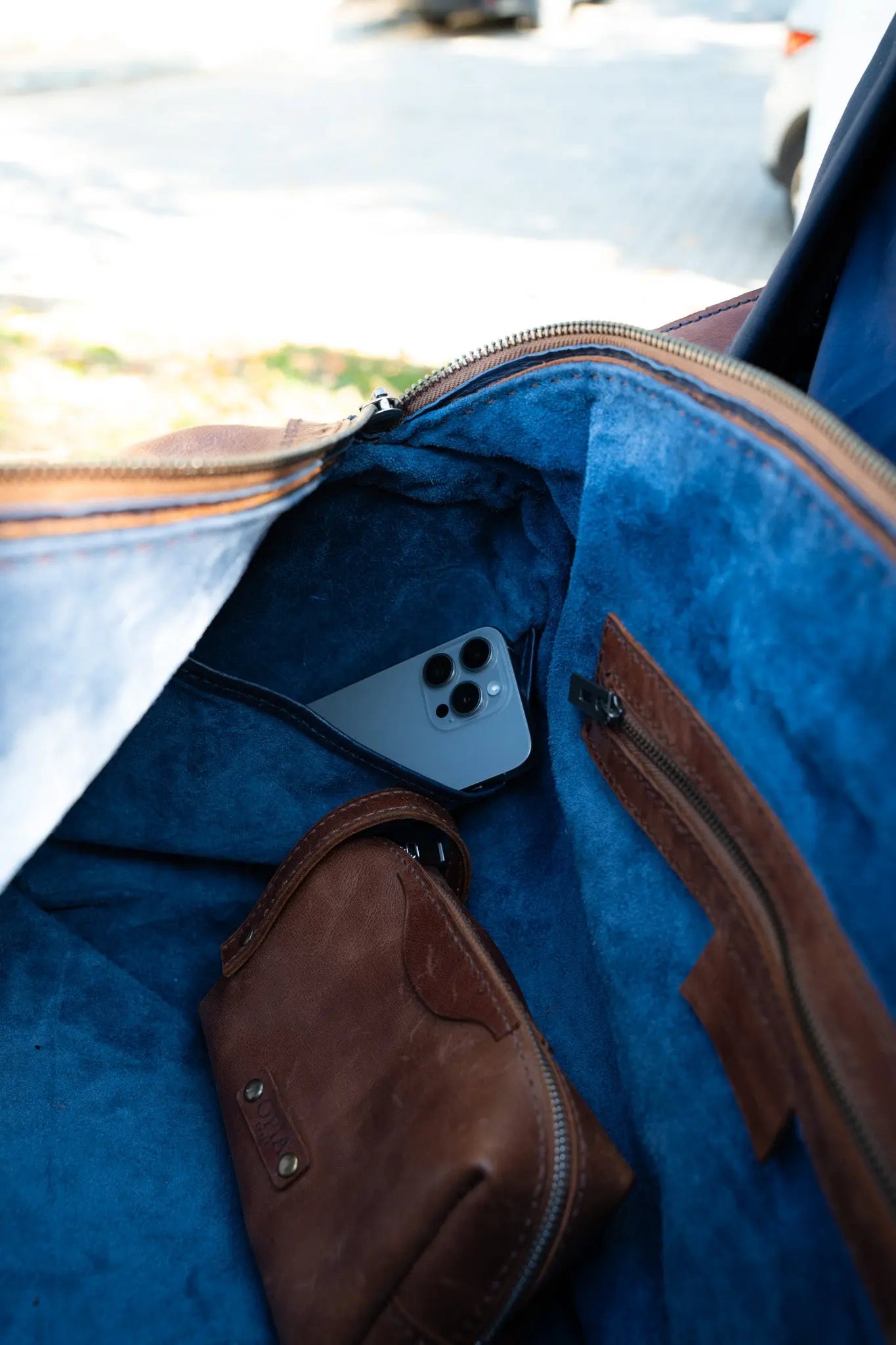 Valizin iç kısmı, mavi deri astarla tamamlanmıştır. Bu detay yalnızca estetik bir kontrast sunmaz; aynı zamanda dayanıklılık ve kalite hissini tümüyle hissedeceksiniz.
