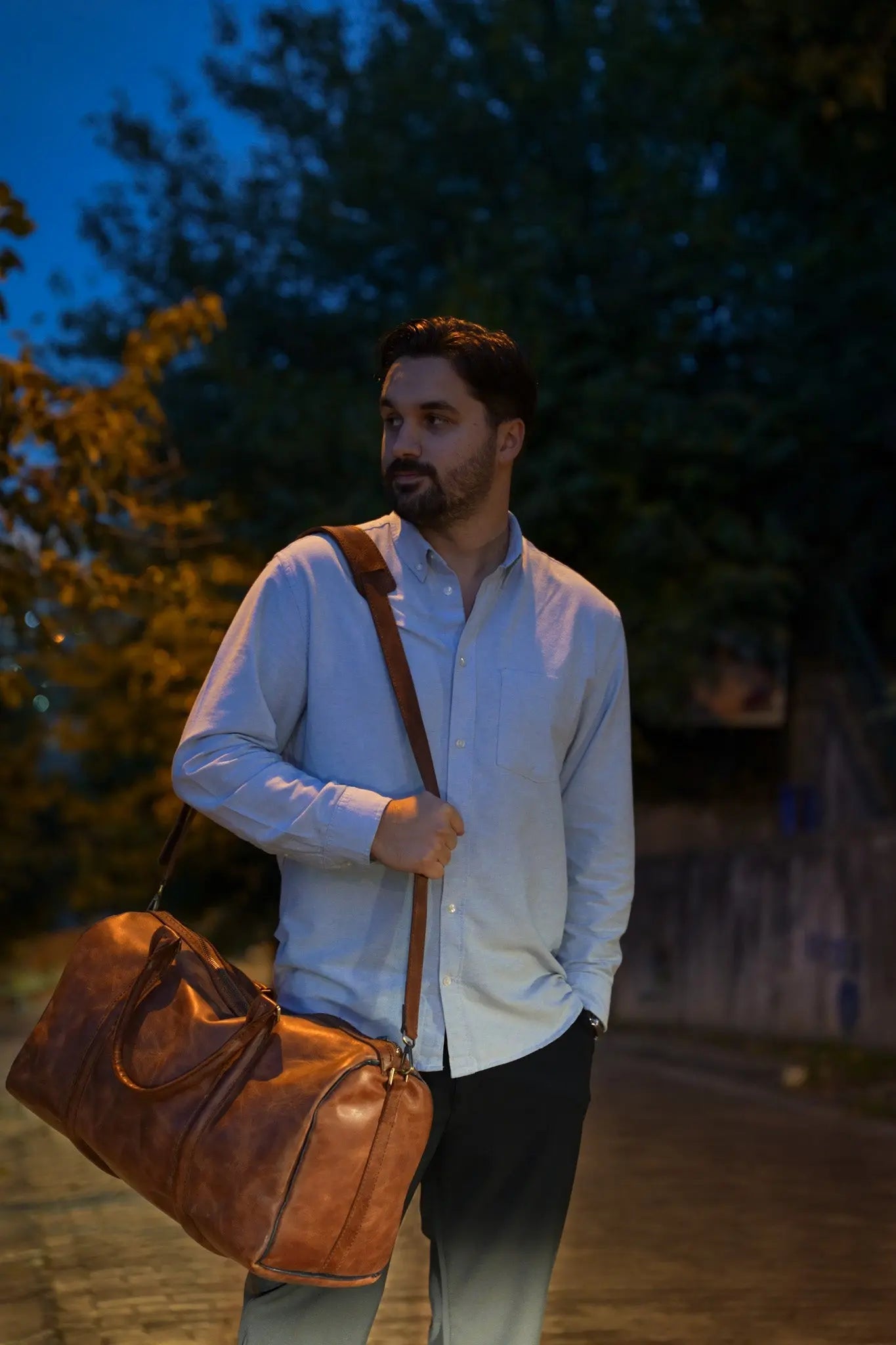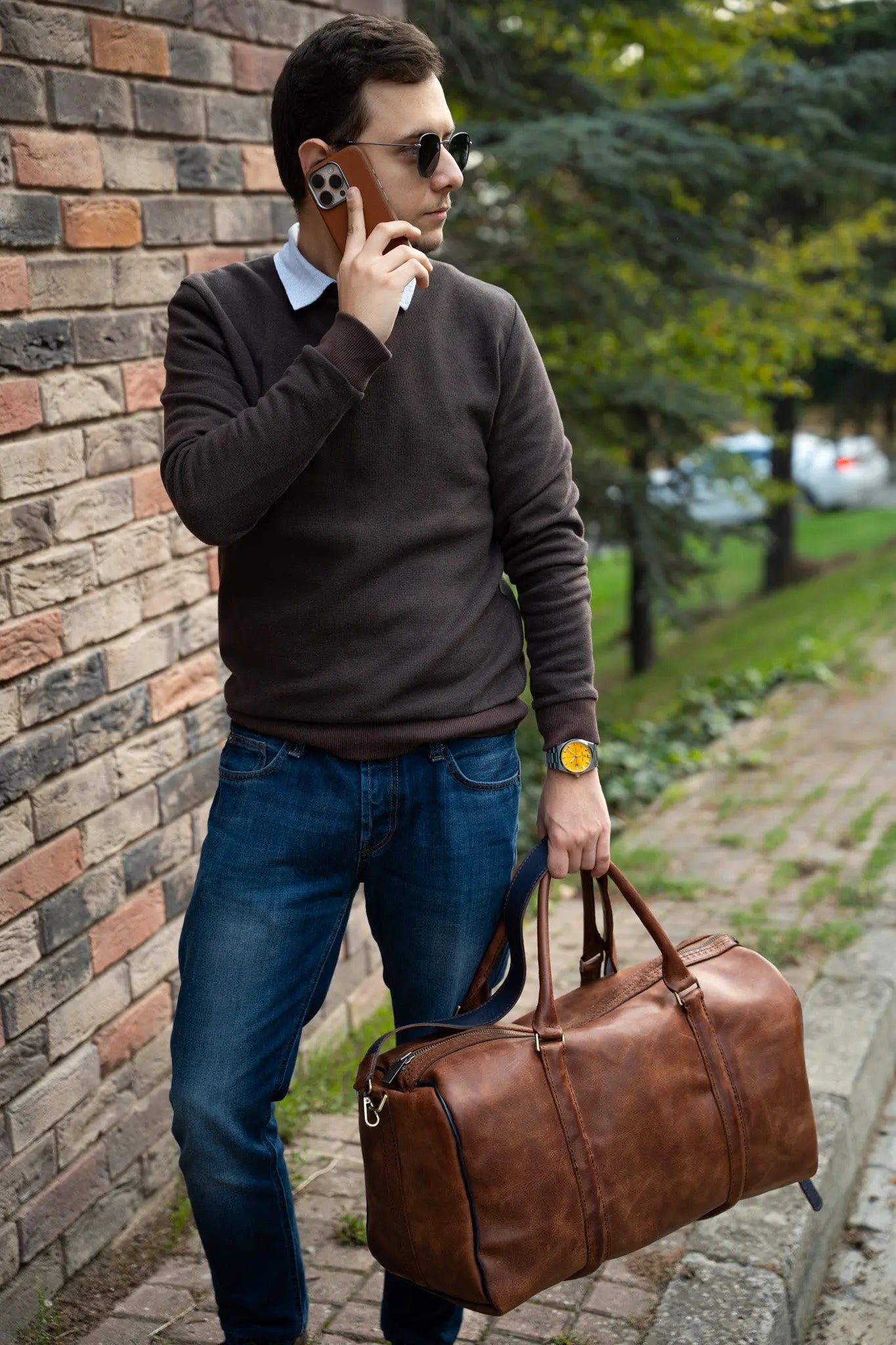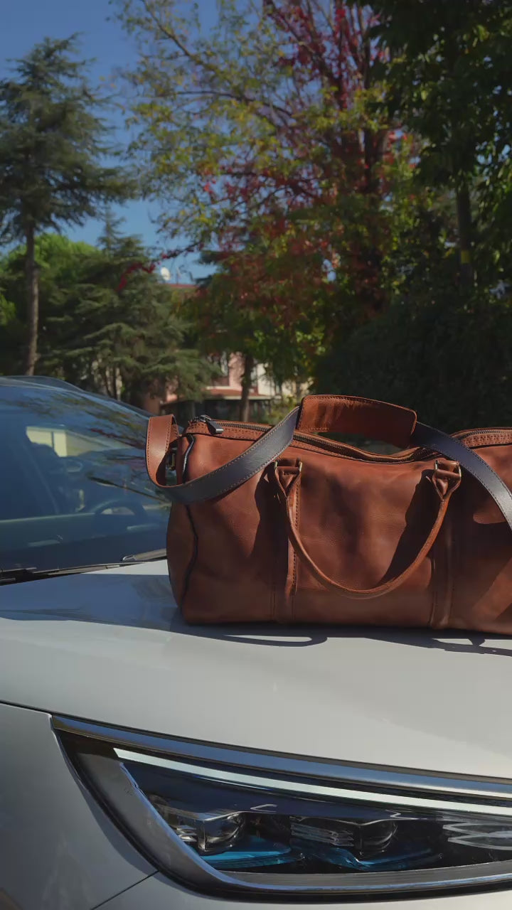 Hakiki derinin doğal dokusu hem sağlamlık sağlıyor hem de zaman içinde benzersiz bir karakter kazanıyor. Kabin boy ölçüsündeki formu sayesinde şehir içi ve uçak seyahatlerinde kolaylıkla yanınıza alabilirsiniz.