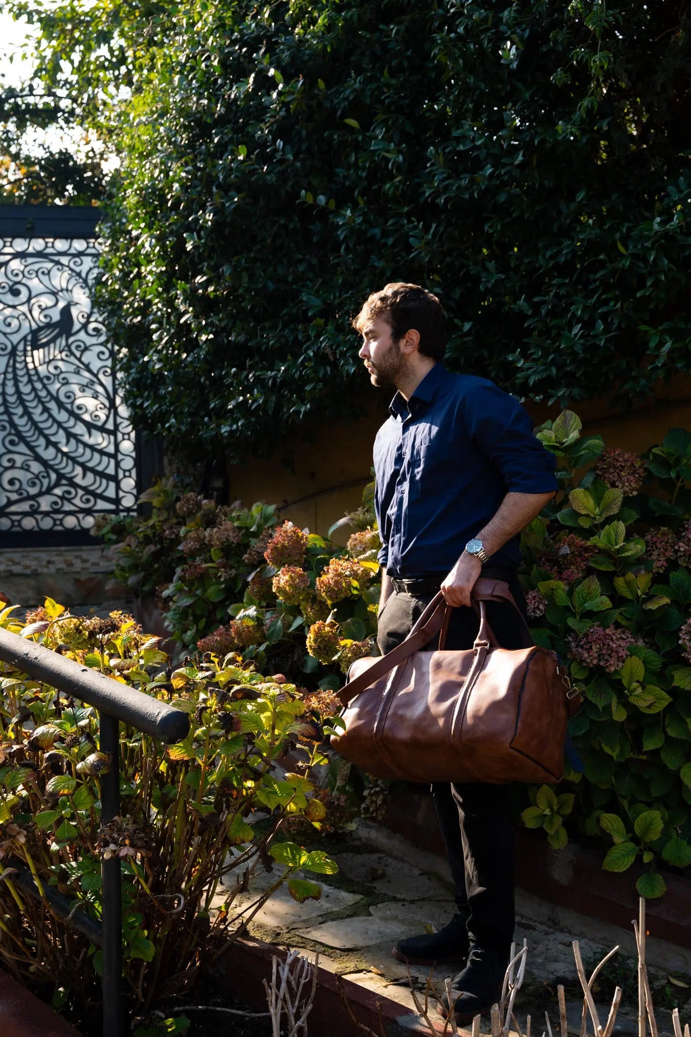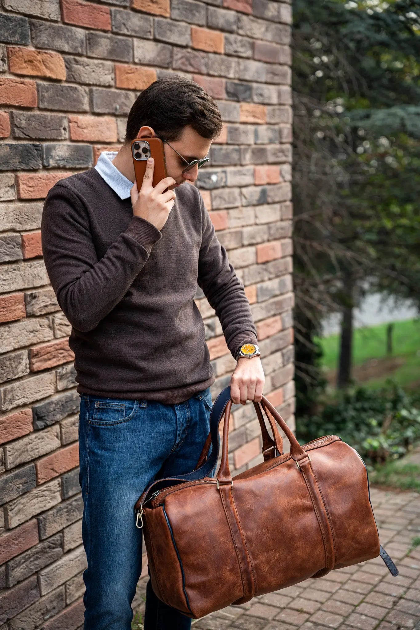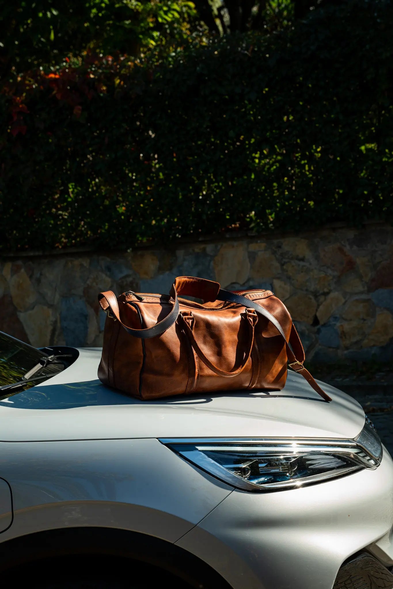 Hakiki derinin doğal dokusu hem sağlamlık sağlıyor hem de zaman içinde benzersiz bir karakter kazanıyor. Kabin boy ölçüsündeki formu sayesinde şehir içi ve uçak seyahatlerinde kolaylıkla yanınıza alabilirsiniz.