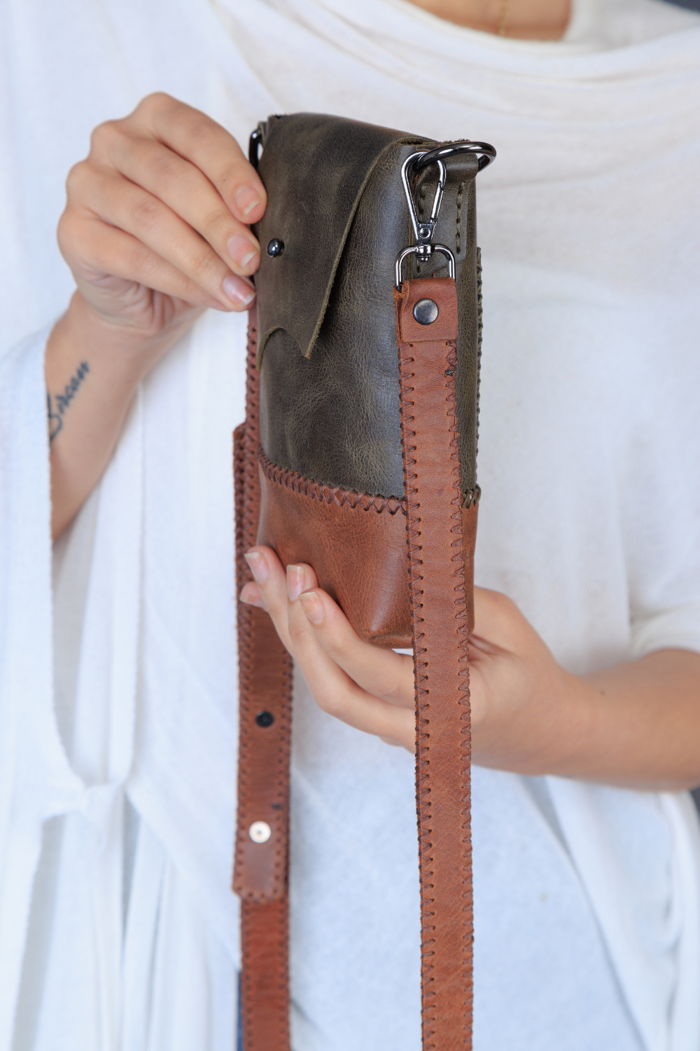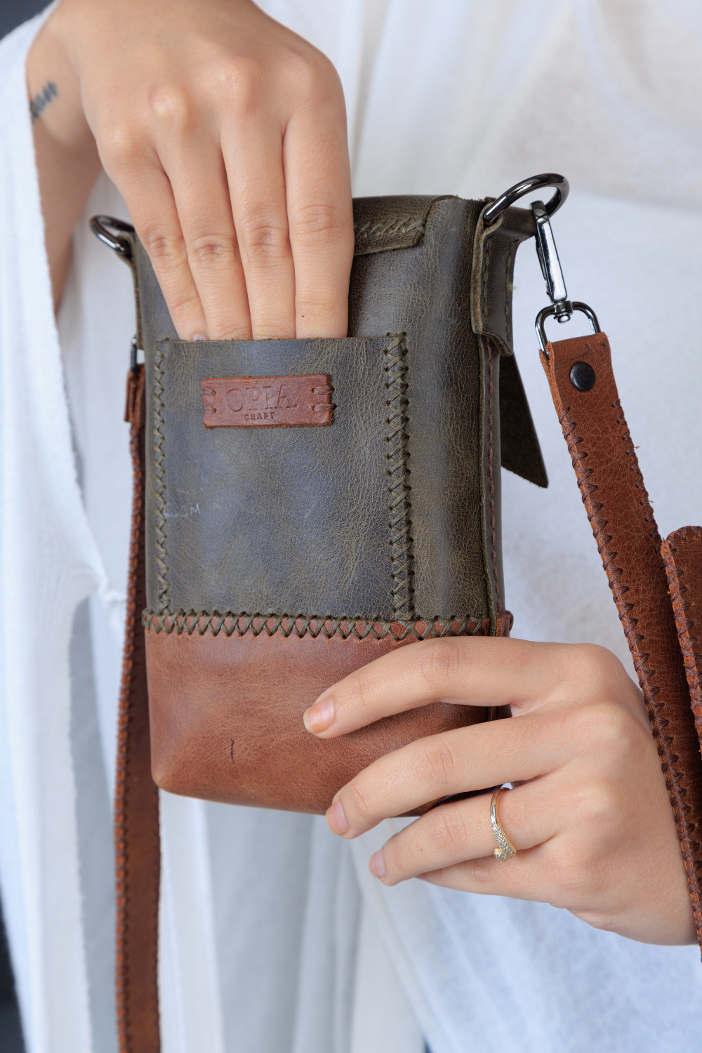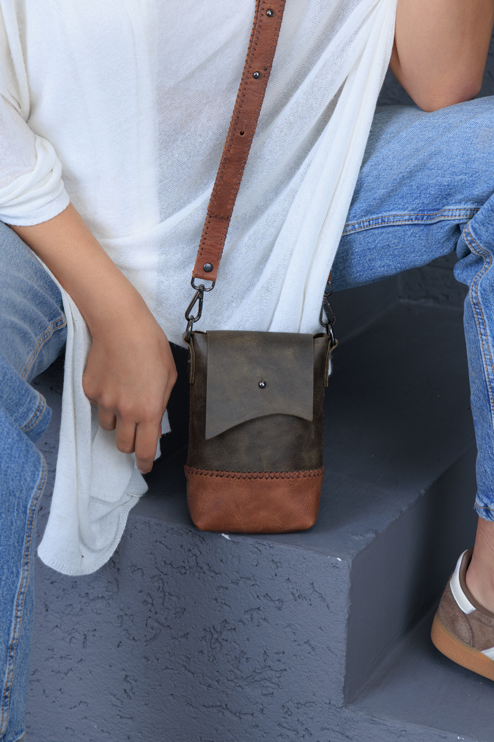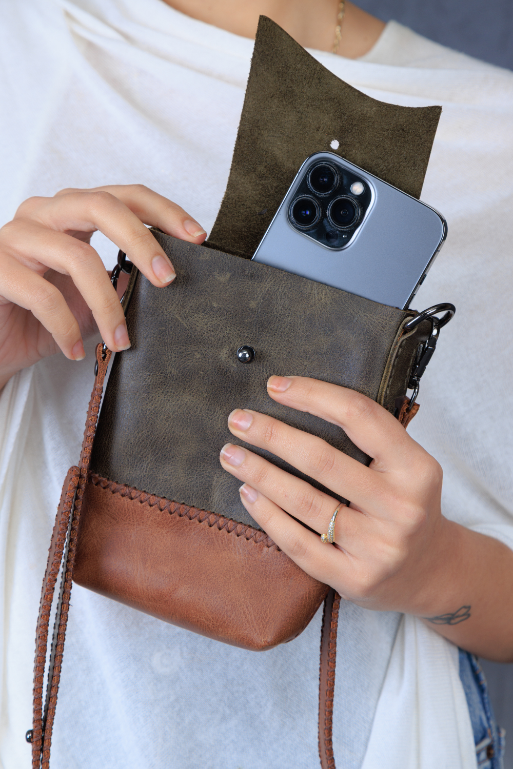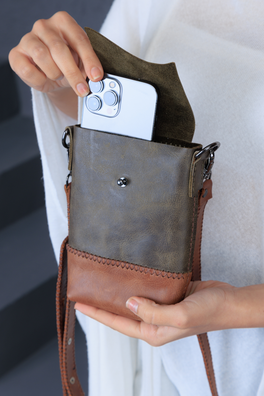 Cep telefonunuz, kartlarınız ve küçük eşyalarınız için tasarlanmış kompakt deri çanta