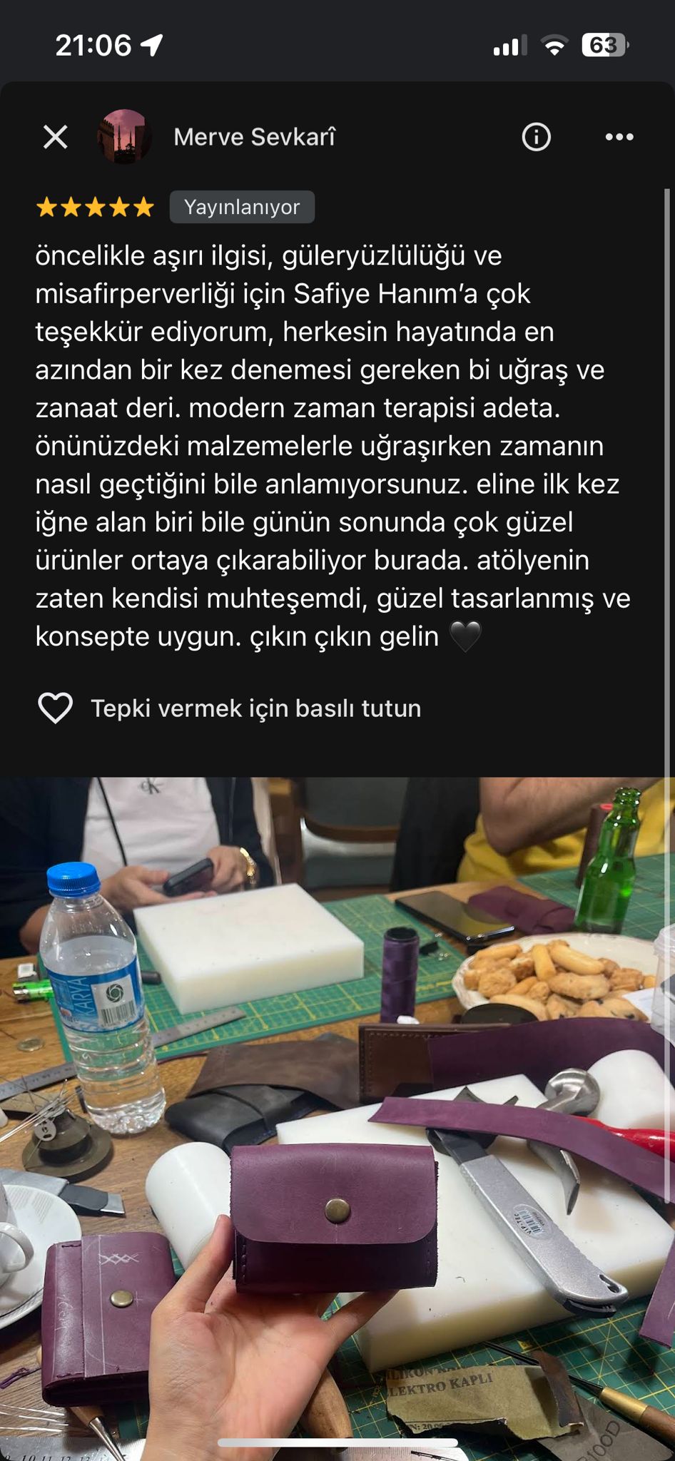 Sevdiklerinizle keyifli vakit geçirebileceğiniz ve sizin için farklı bir etkinlik olabilecek deri kursumuzun fiyatı Bu ay için 1800TL'dir.