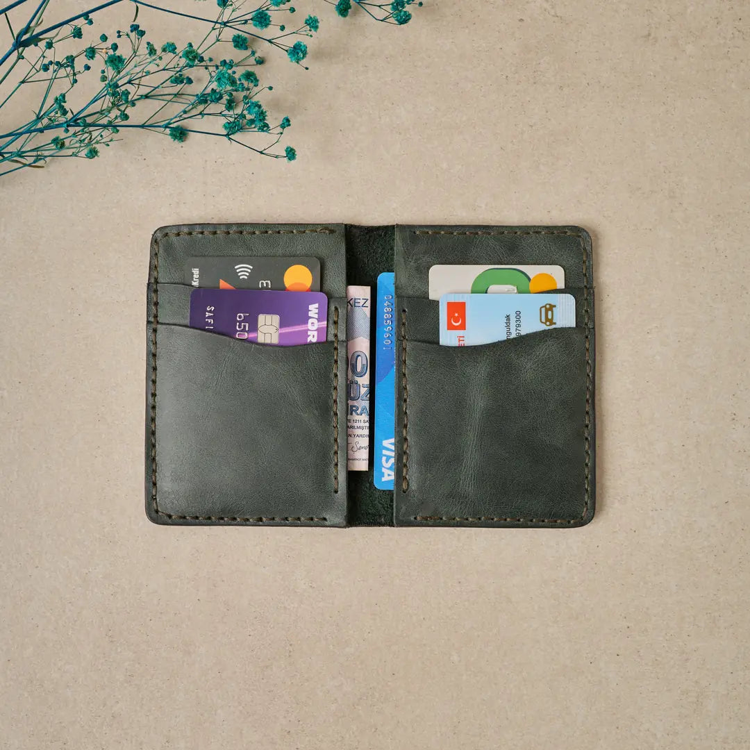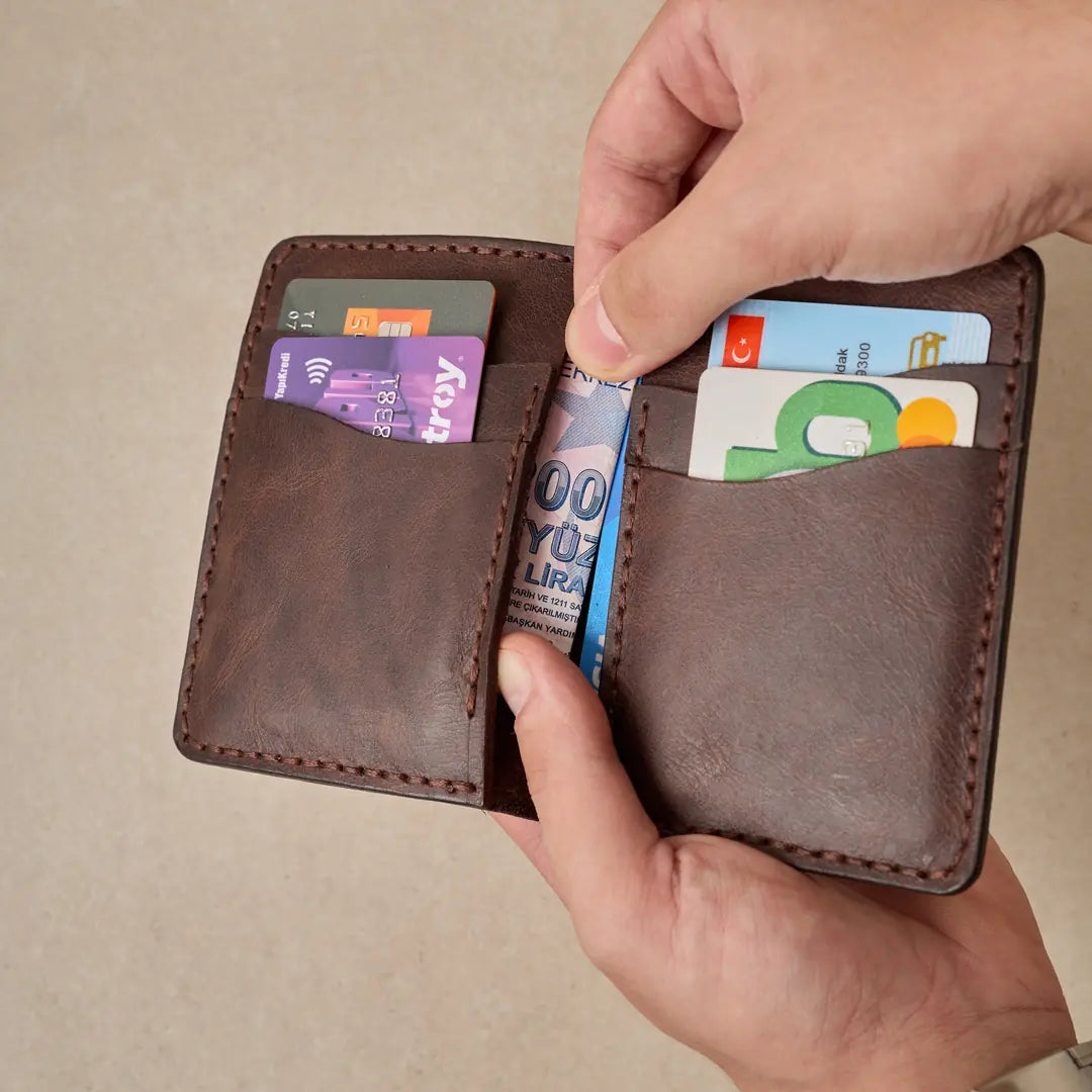 2 adet para bölmesi (Katlayarak konulur)4 adet kart bölmesi Premium deriTamamen el yapımı ve el dikimi8.7 x 11.8 cm minimalist ölçülerKişiselleştirme seçenekleriHediye paketi