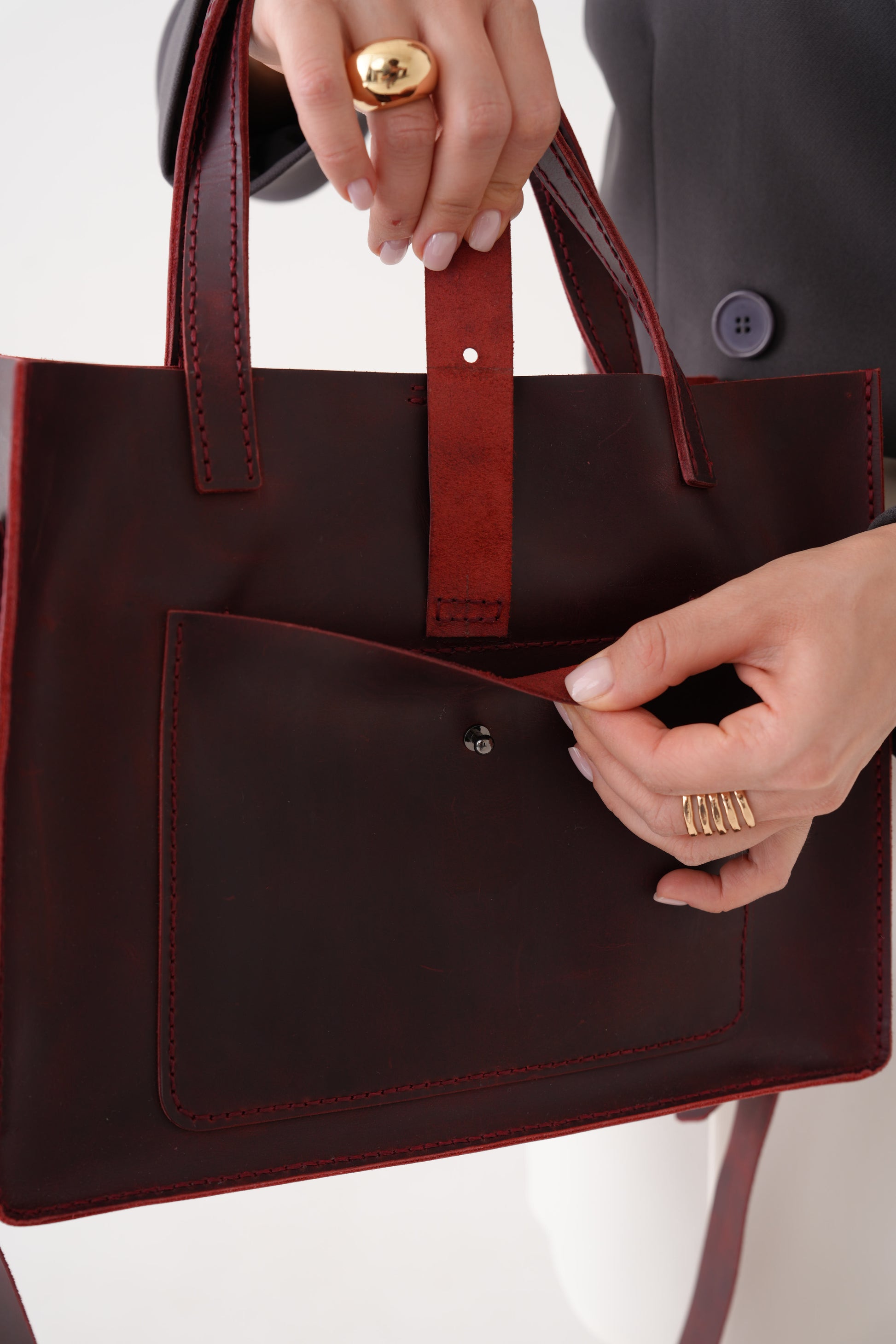 Derinin doğal dokusu ve mat bordo tonları, her kullanımda daha da güzelleşen, kişisel bir hikâye taşır.