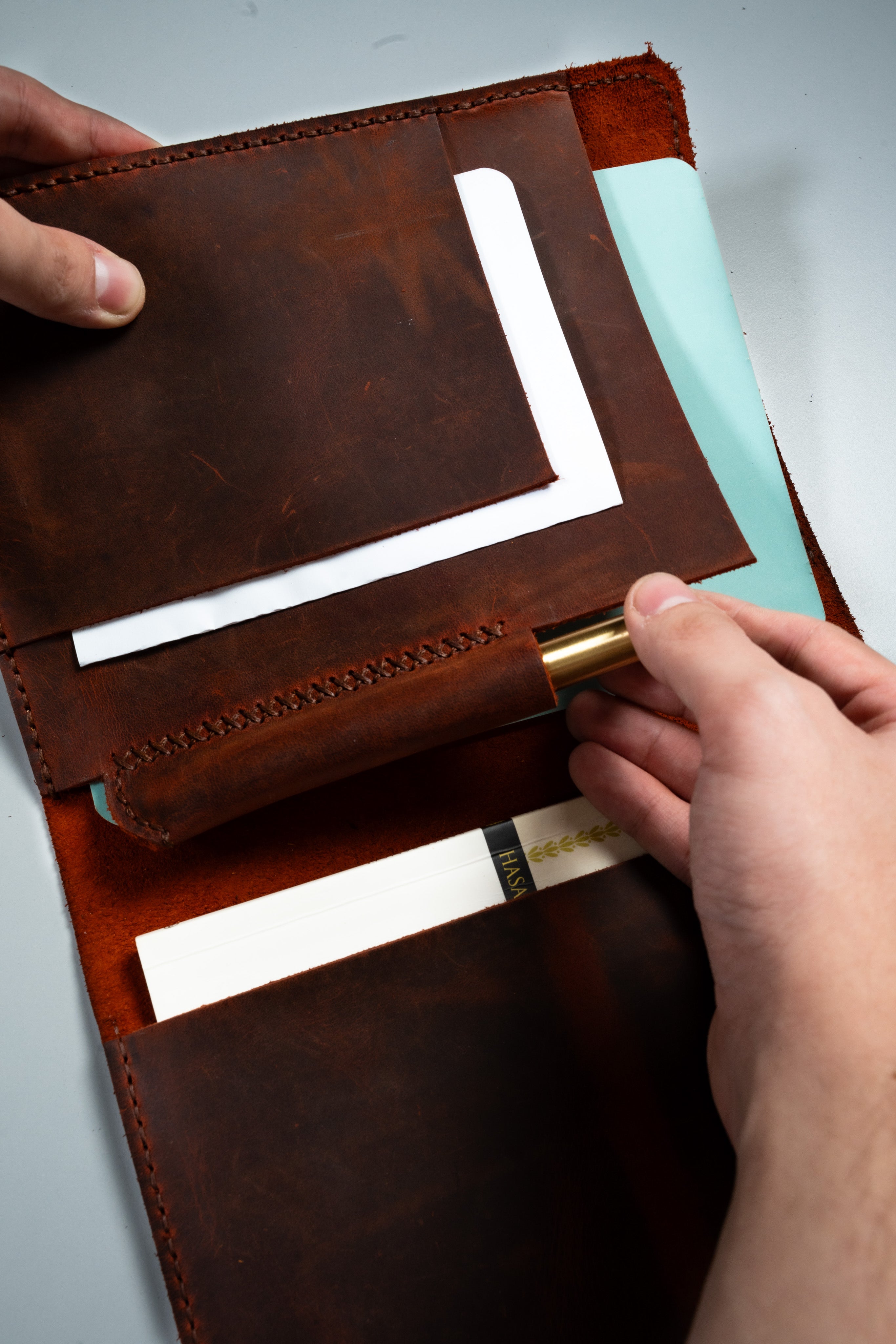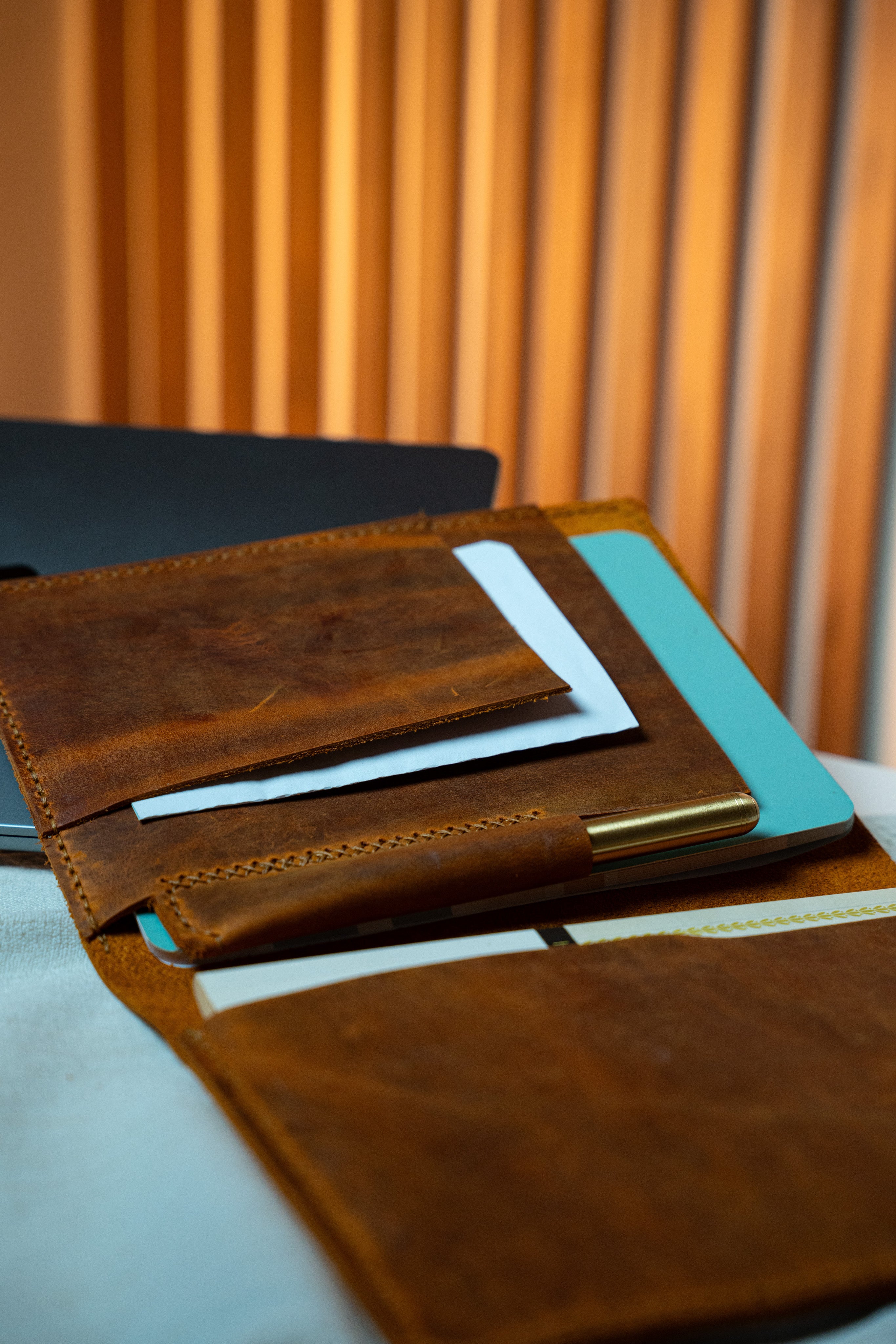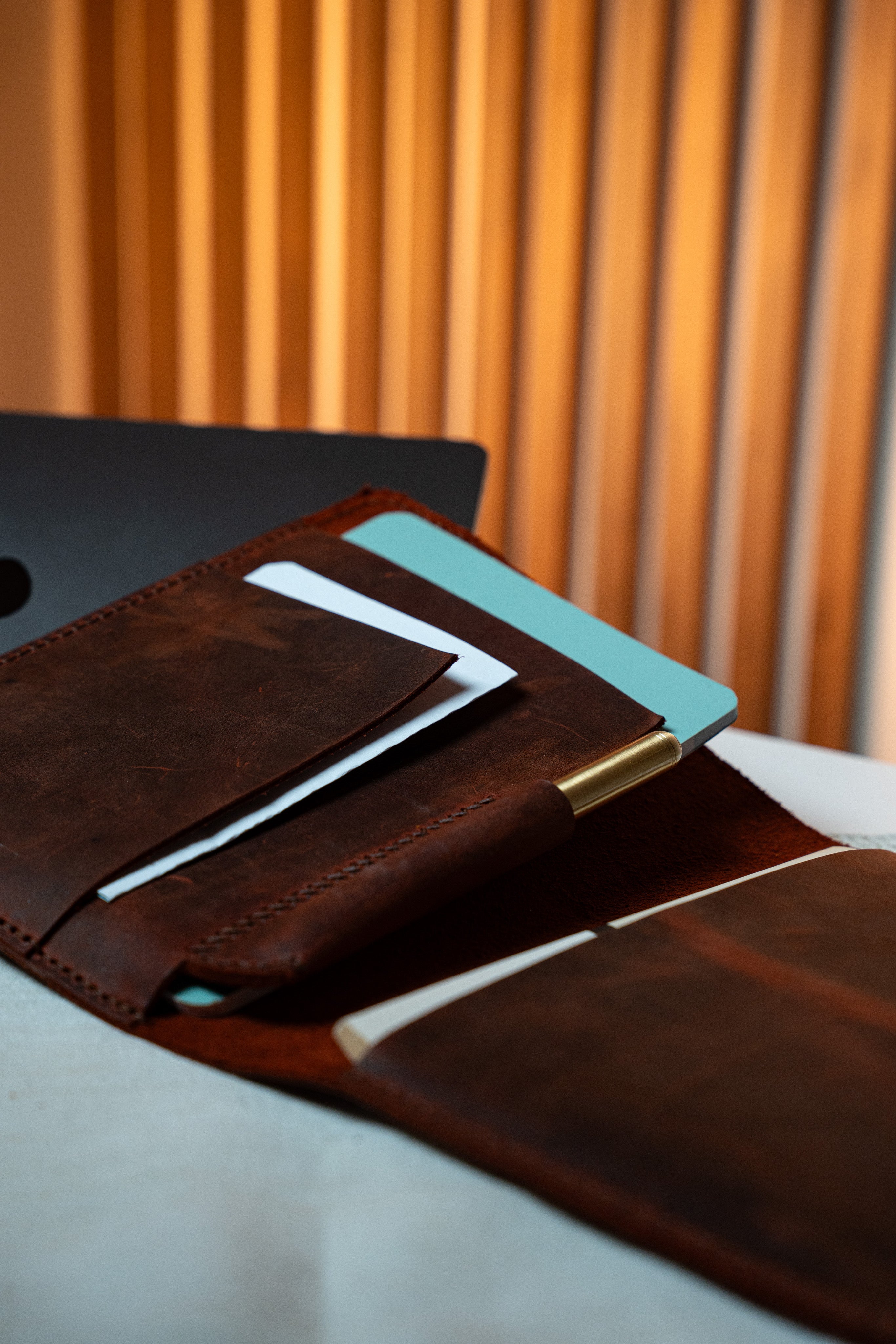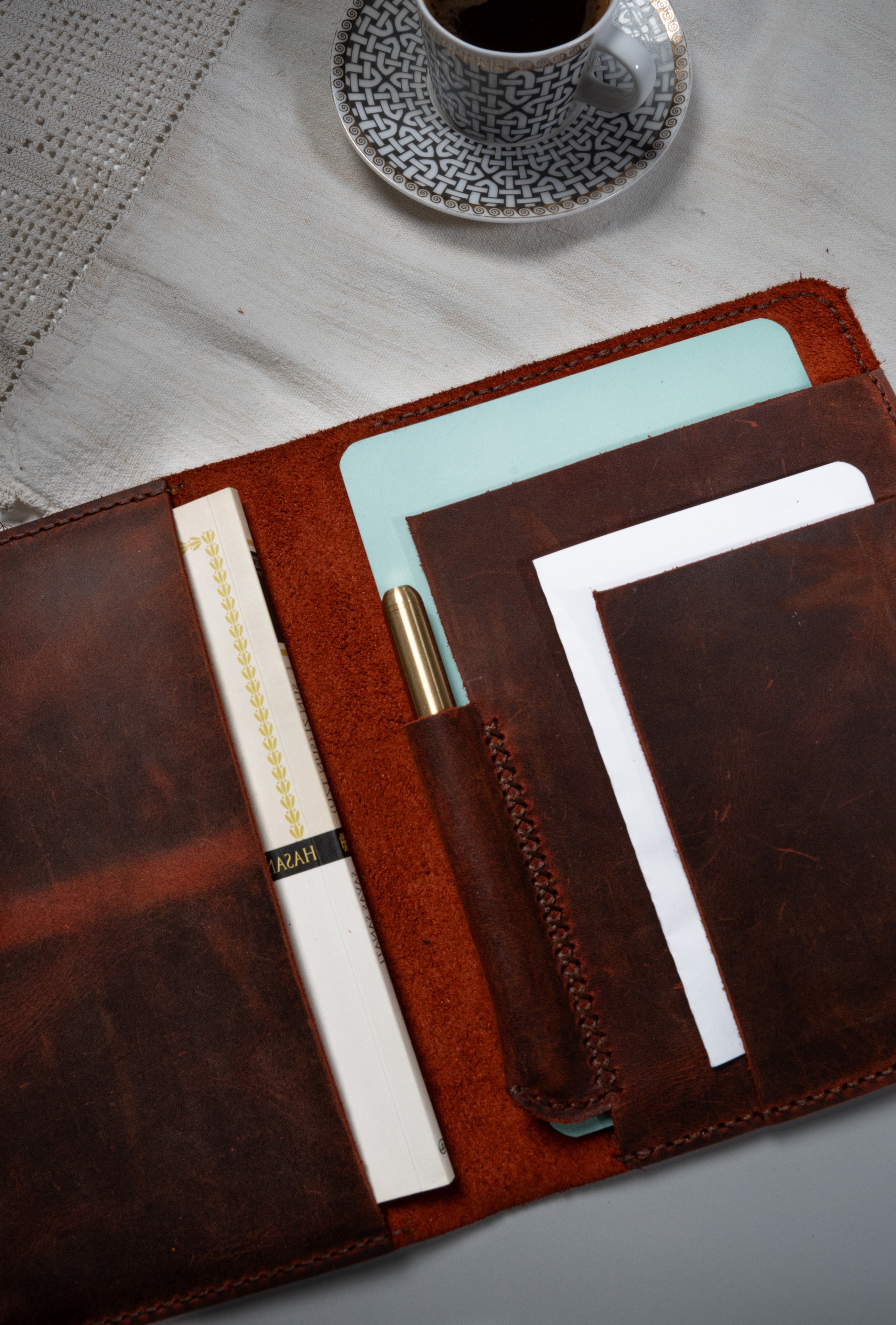 Tamamen el işçiliğiyle hazırlanan bu deri kılıf, zamanla kendi izini oluşturan doğal dokusu, yumuşak tutuşu ve fonksiyonel iç düzeniyle; toplantılarınızda, derslerinizde, yolculuklarınızda ve üretken olduğunuz her anın tamamlayıcısıdır.