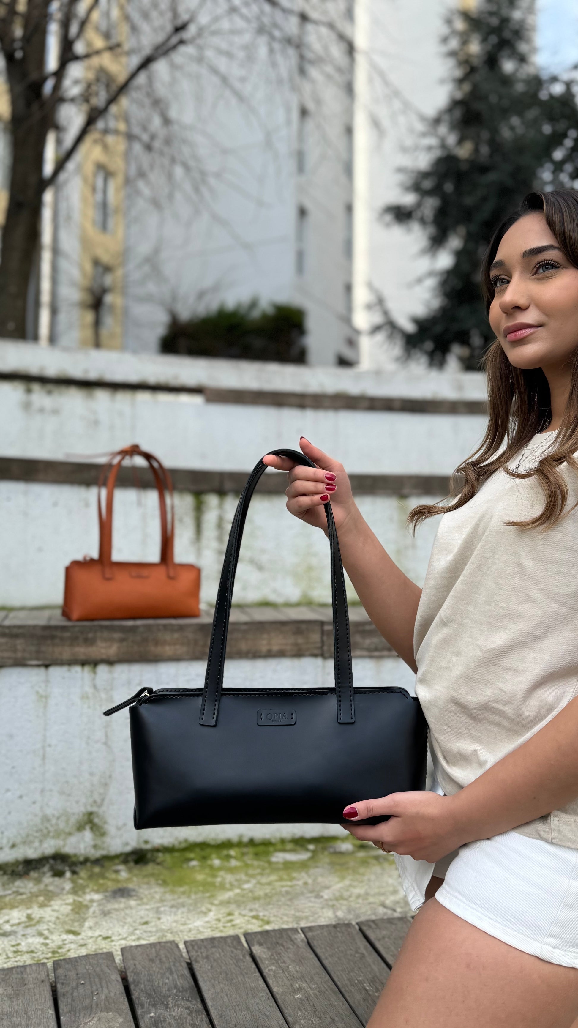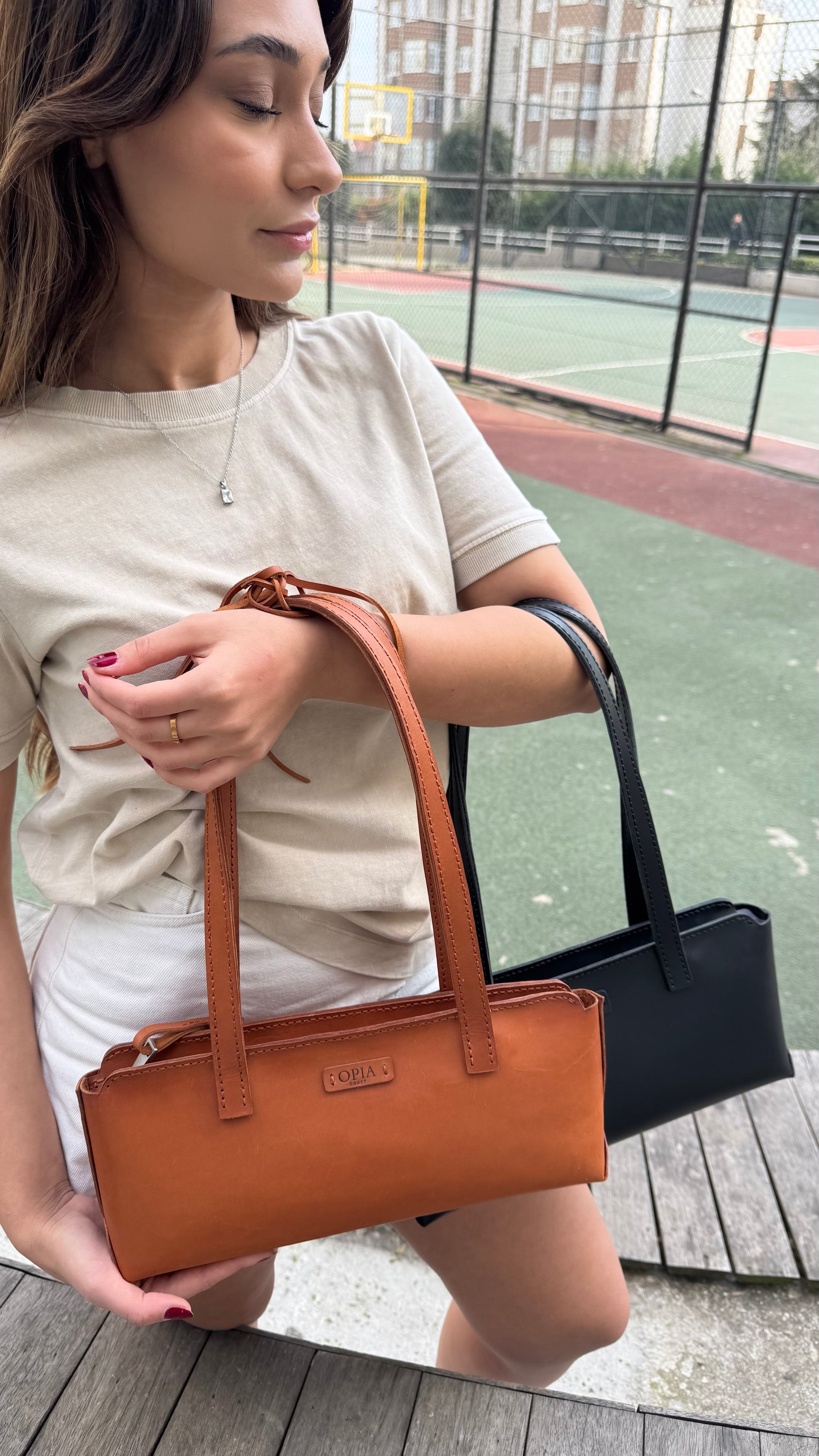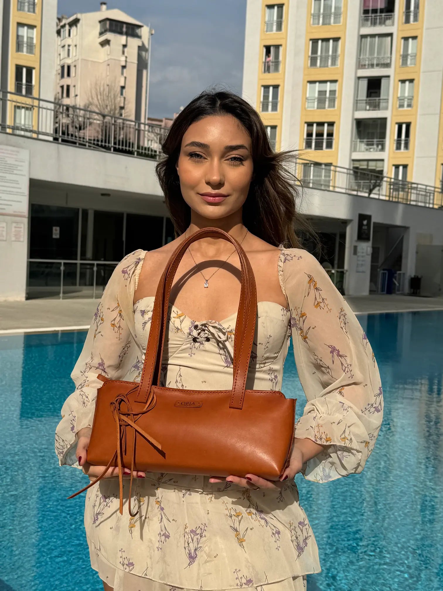 Yalın çizgileriyle öne çıkan taba baget modelimiz, gündelik şıklığını bir adım yukarı taşıyan, sadeliğin en iddialı hali.