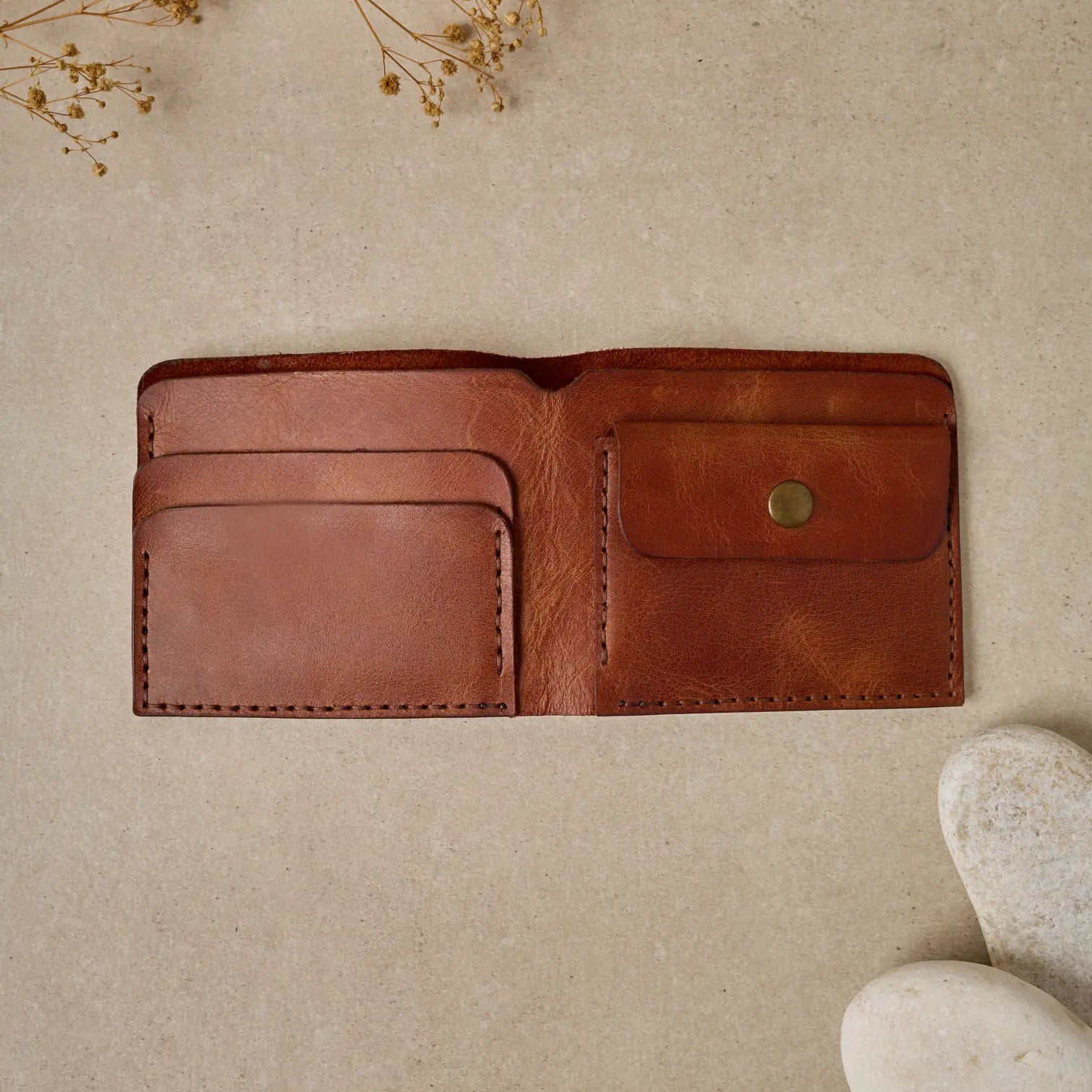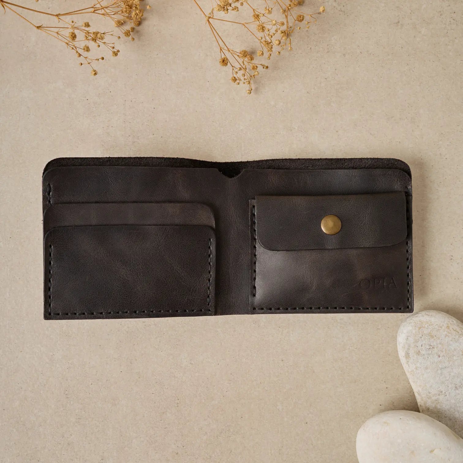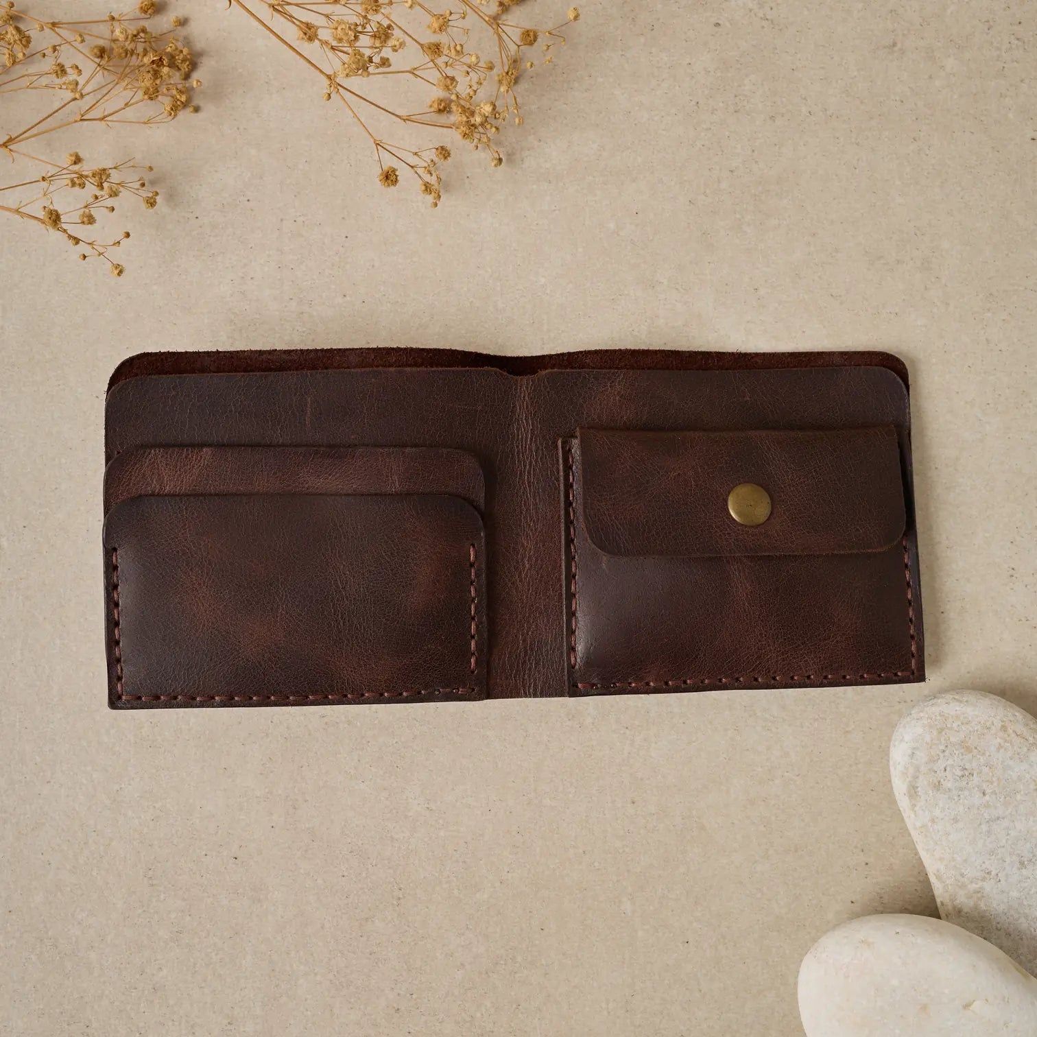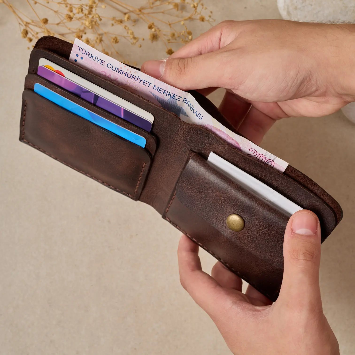 TUĞRA Model Cüzdanımız, Bozuk paralarınız veya başka koymak istedikleriniz için özel olarak tasarlanmış düğmeli cebiyle size rahatlık sağlıyor.
